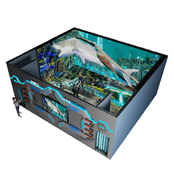 懸空玻璃劇場由阿哩樂傾力打造,應用多項VR技術,采用多面高清高刷新率LED顯示屏幕,組成封閉式的沉浸式空間,環繞十通道音效,地面采用透明超白鋼化玻璃組成的懸空廊橋,配上高清裸眼數字影片,給體驗者一種跨越時空、身臨其境的體驗感覺。